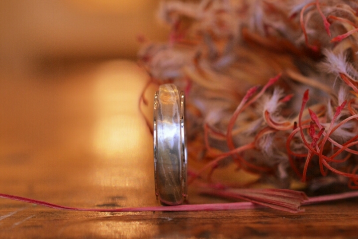 ピンクゴールドの入った木目リングを